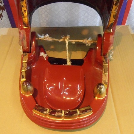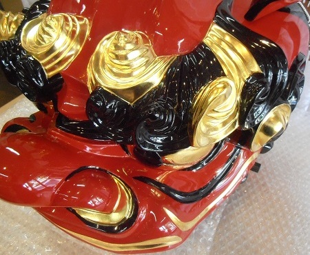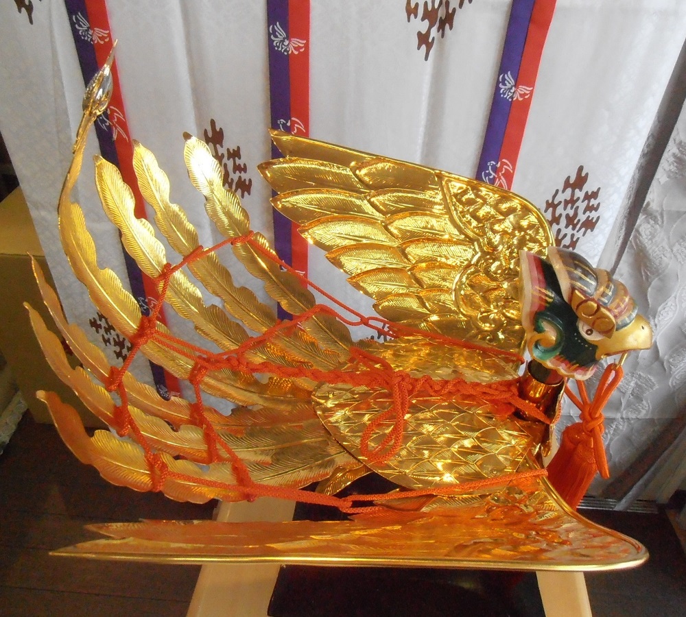 ・ ◎獅子頭:修理 補修補強・塗装・金箔 ・ ・ ・ ◎子ども神輿 鳳凰(大鳥)・修理 御明細:補修補強・頭極彩色仕上・本金鍍金仕上・房、紐新調 ・ ・ ◎飾弓矢(二張立型・矢11本)・御修理 御明細:破損箇所補修・塗装・房、紐新調 ・ ・ ◎雪洞(ぼんぼり):張替え 人絹緞子(小葵)張替え・木地修理補強